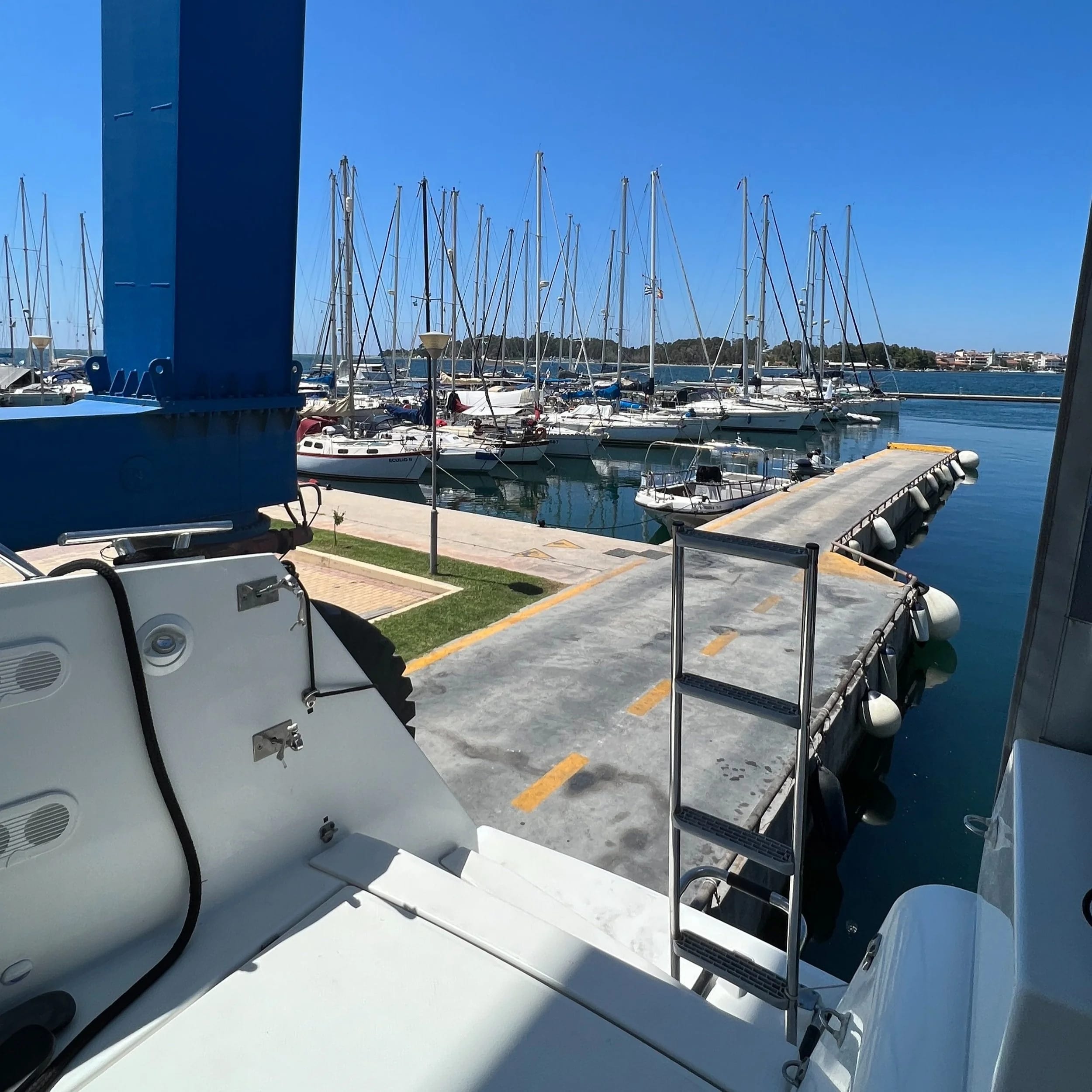 Long Summer’s potential new owners arrived in Greece from Australia for a two week overlap with us in order to complete the pointy end of the sales process. The biggest job of which was the marine survey. And we’re not going to lie, it was a long and exhausting process! The buyer’s surveyor Rolf is clearly an expert in his field, and was extremely thorough. He spent two full days poking and prodding in every nook and cranny of Long Summer. Day One saw us haul her out at Cleopatra Marina in Preveza for six hours, before splashing again for more inspections that afternoon. And the morning of Day Two started with yet more examinations before a full sea trial in the afternoon as well.