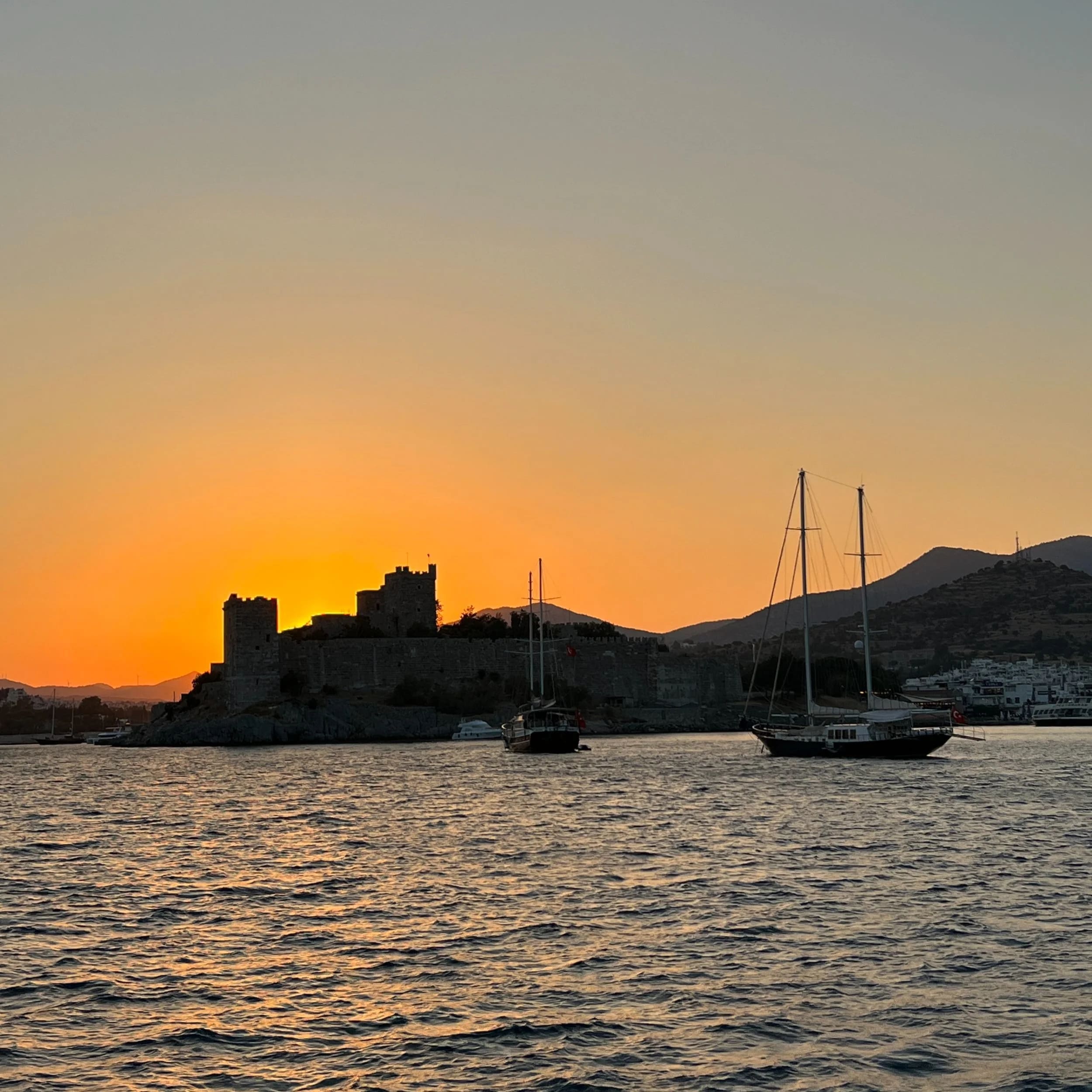 After checking into Turkey at Bodrum, we dropped the hook for a couple of nights in the big city bay under the 15th Century castle.