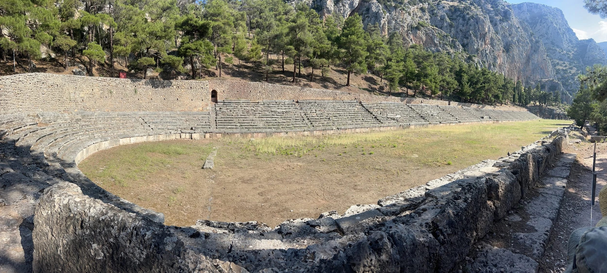 From Galaxidi - as many people do - we hired a car for the day and drove up to the archeological site of Delphi. Of course, we were up and out early to beat both the crowds and the heat. We wound our way through olive farms and up the slopes of Mount Parnassos, where this spectacular site sits amidst rocky bluffs and sheer cliffs. The air was noticeably cooler up here, which was a great relief in the middle of a heatwave! In fact, not far from here is the Parnassos Ski Resort. (Yes, you can ski in Greece with sea views!)