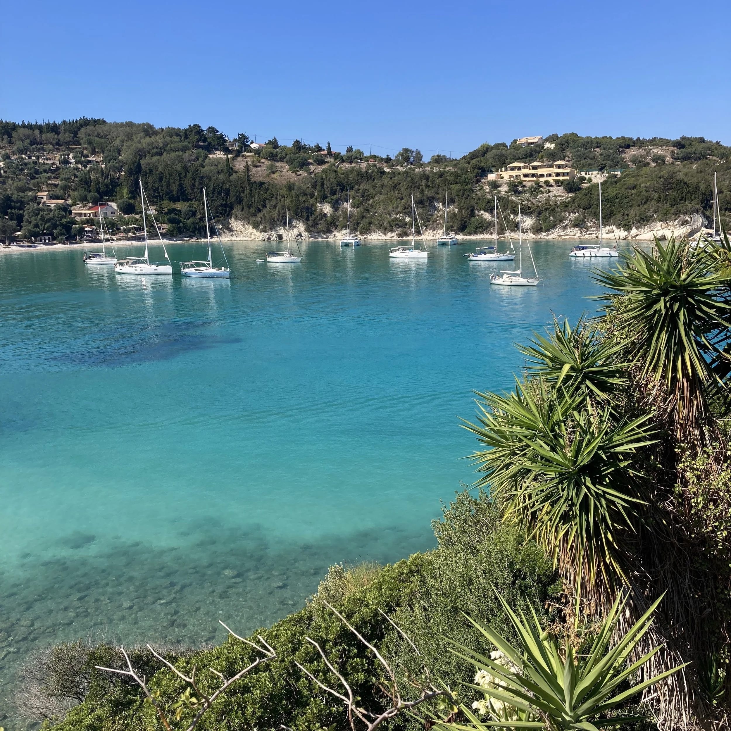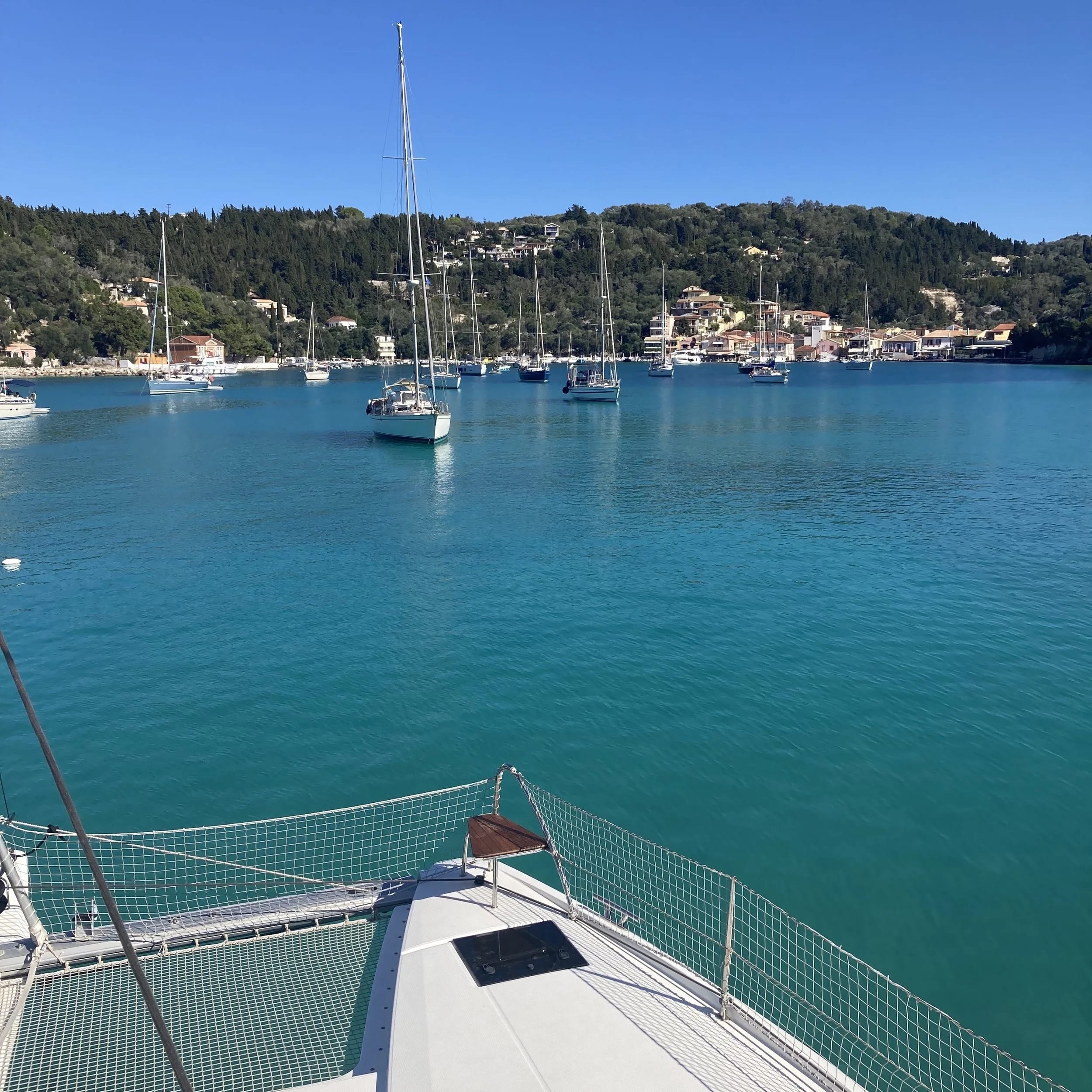 One of the prettiest bays we ever did see! What better way to round out the end of the season than in the stunning harbour of Lakka. It lies on the northern point of the island of Paxos, and within the naturally circular bay is a friendly little village. We were lucky to get a spot in this popular anchorage. Flanked by cypress trees and olive groves, it has turquoise waters for days!