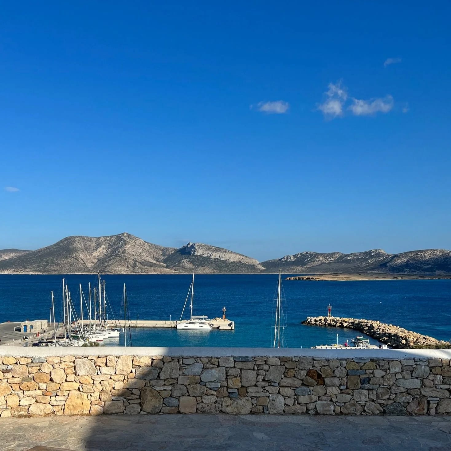 And just when we thought all the fun was over, a large catamaran was granted permission to tie up on the outside of the marina wall at dusk, blocking the entrance to the harbour entirely. Cue much Greek shouting & gesturing from other captains. But they would not budge. Forget maritime law and access to safe harbour, their guests needed to get to dinner! But before they could disembark we pointed out that we would be leaving at 6am the following morning… They quickly scurried back out to the anchorage in the bay - no one wants to get up that early on holiday!