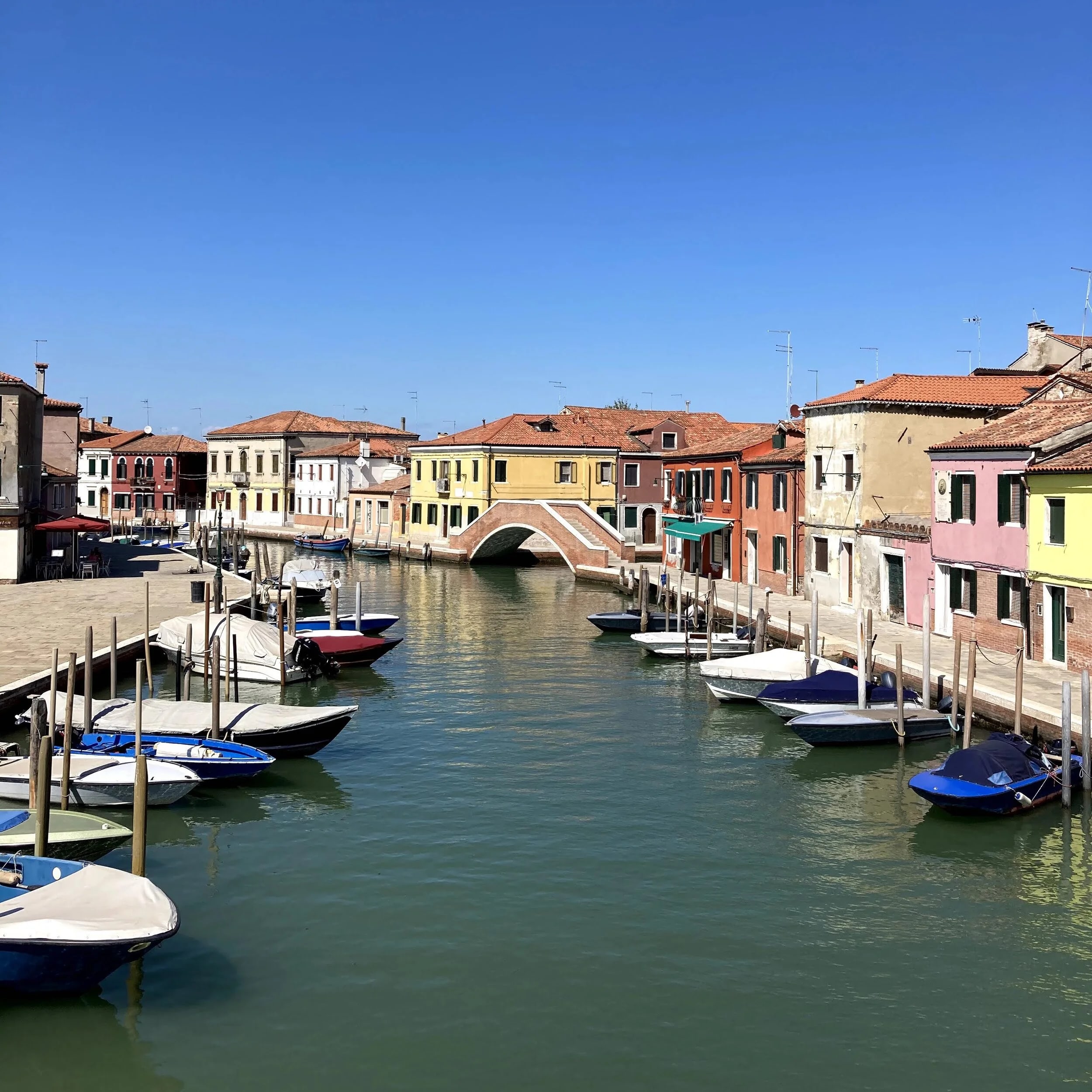 Famed worldwide for its glass production, Murano Island has little else to offer. Exploring the island by foot along the many canals of Murano is part of the experience, but the day we visited was hot and busy. The queues for the Glass Museum were too long. At lunch we waited for a bad sandwich and ate it sat on the street whilst a shopkeeper told us off. The best glass blowing factories are not open to tourists. Souvenir shops here sell cheap counterfeit glass and many display rooms offer poor glass-blowing demonstrations.