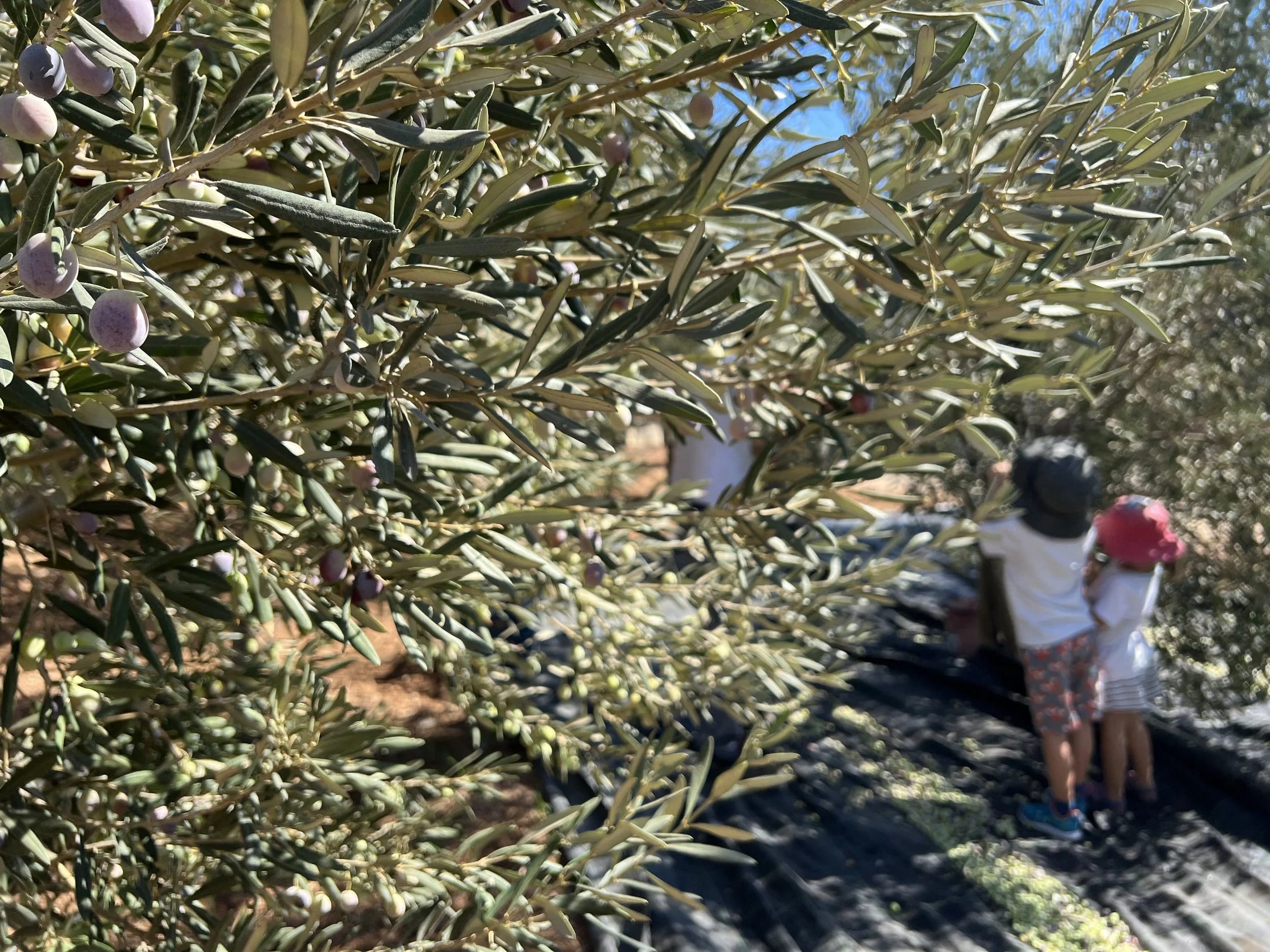 Olive picking season in Turkiye. We came across some workers stripping the trees at the marina and they invited us to join in. We didn’t share a common language, but they patiently showed us how to hand-strip the branches for the olives to drop onto the mats below. The kids absolutely loved it and we couldn’t drag them away!