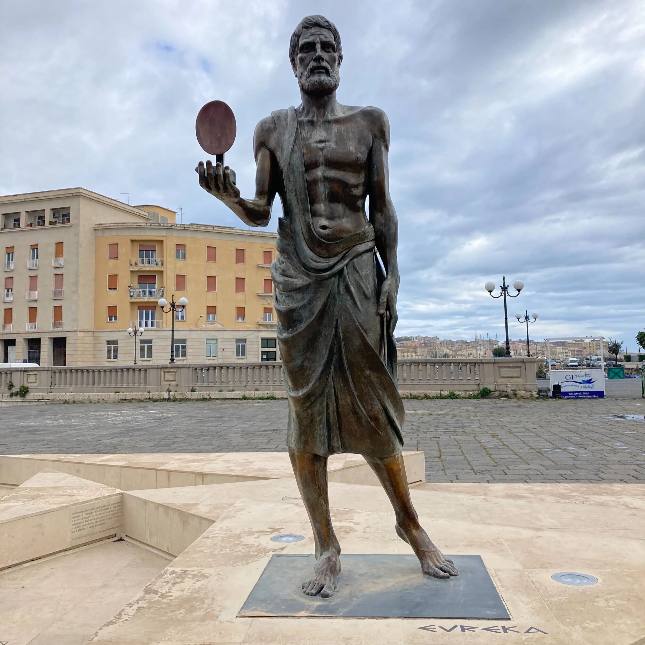 Throughout the city are references to the classical mathematician, physicist and engineer, Archimedes. He was born in Syracuse, which at the time was a part of Greater Greece, and he is credited with inventing defensive war machines to protect his native home from invasion. However, he was killed during the two-year siege of Syracuse by a Roman soldier, despite orders from the General that he should not be harmed.