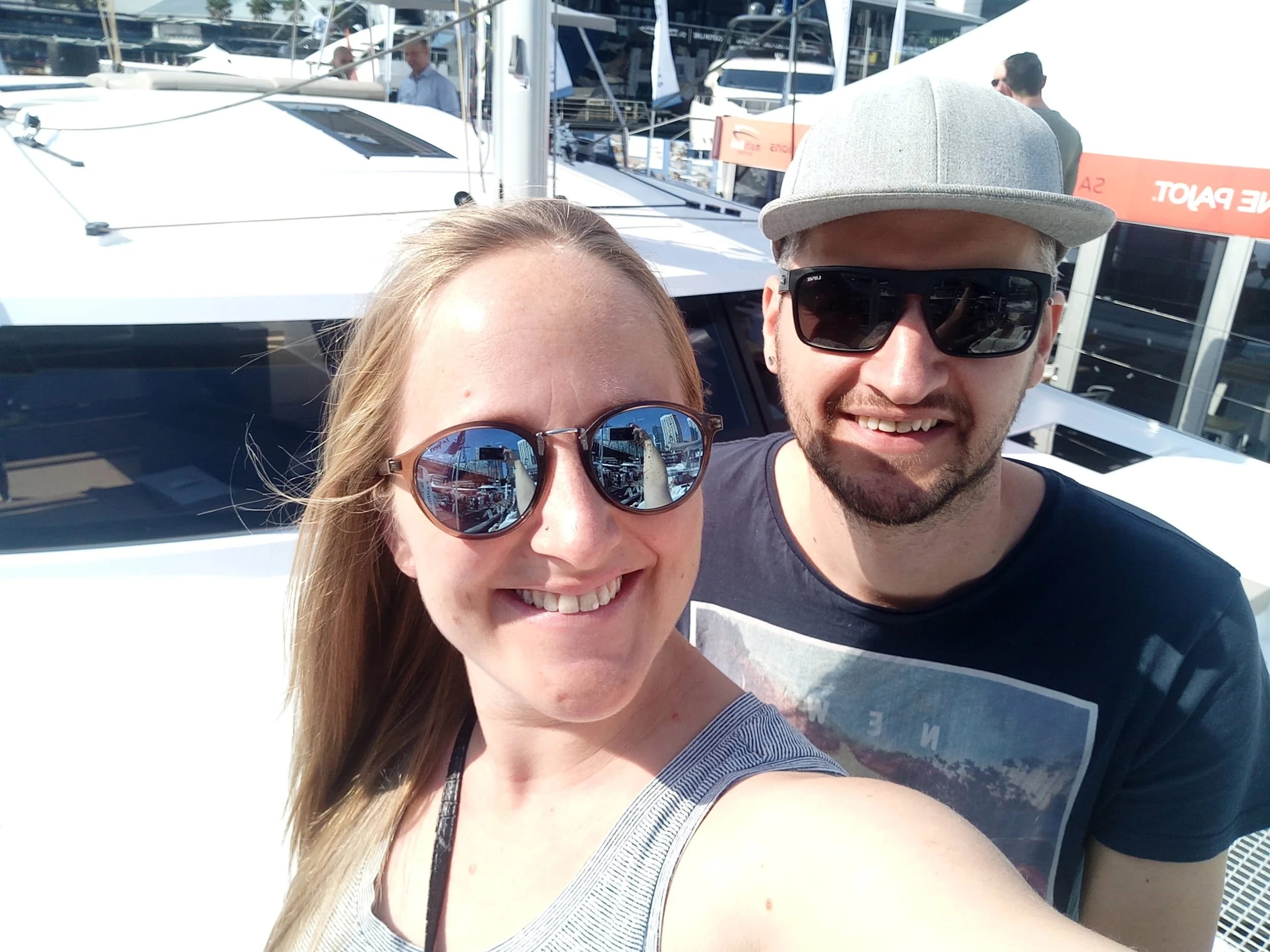 So yes, we called on our trusty and enthusiastic Sydney-based family to go along and play us! We arranged tickets through Multihull Solutions (thanks Anna!), and Emily’s sister was very obliging considering she was overdue with her first baby! We had such amazing feedback, pictures and videos sent through to us - something I think we can take for granted these days, especially when it’s so personal and meaningful to you. And even better was the on-the-spot video call to run through all the important features of the boat, so thank you!