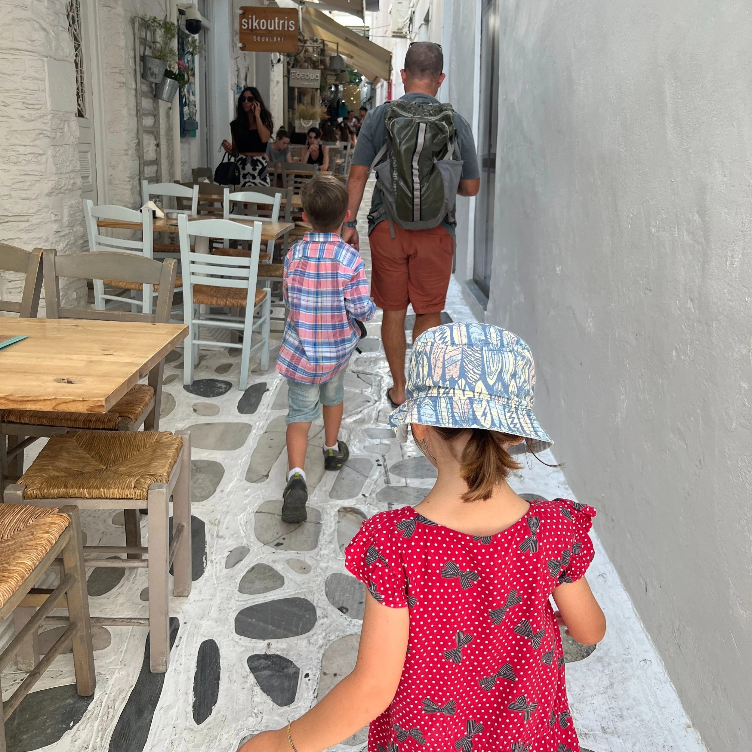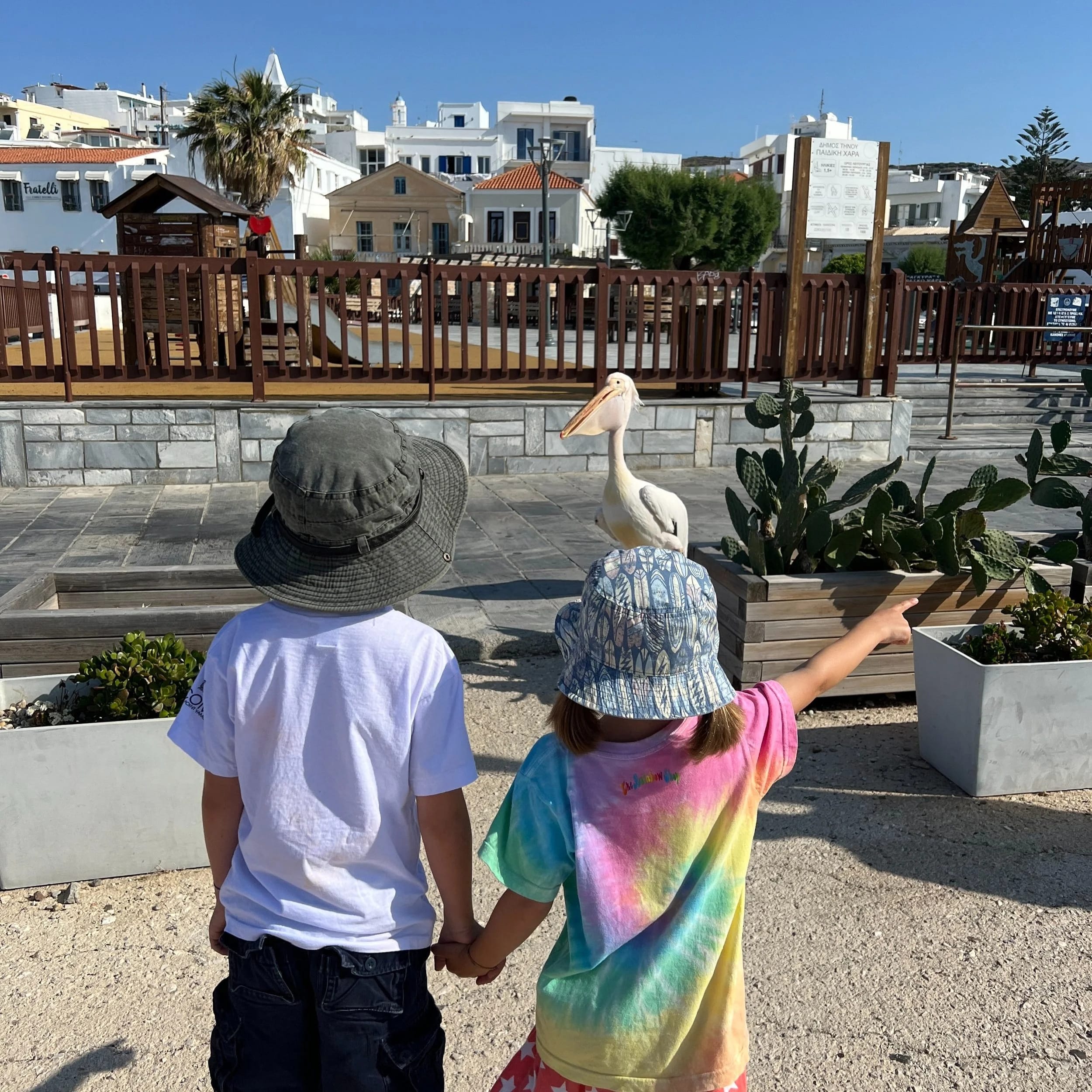 One day on our way to the playground the kids were practising crossing the road whilst we supervised from a little distance behind. When they did not cross when the coast was clear we were confused, until a large pelican appeared and blocked their path! Apparently this infamous local lives here in a fish shop with three cats when he’s not wandering about the town. His name is Marcos!