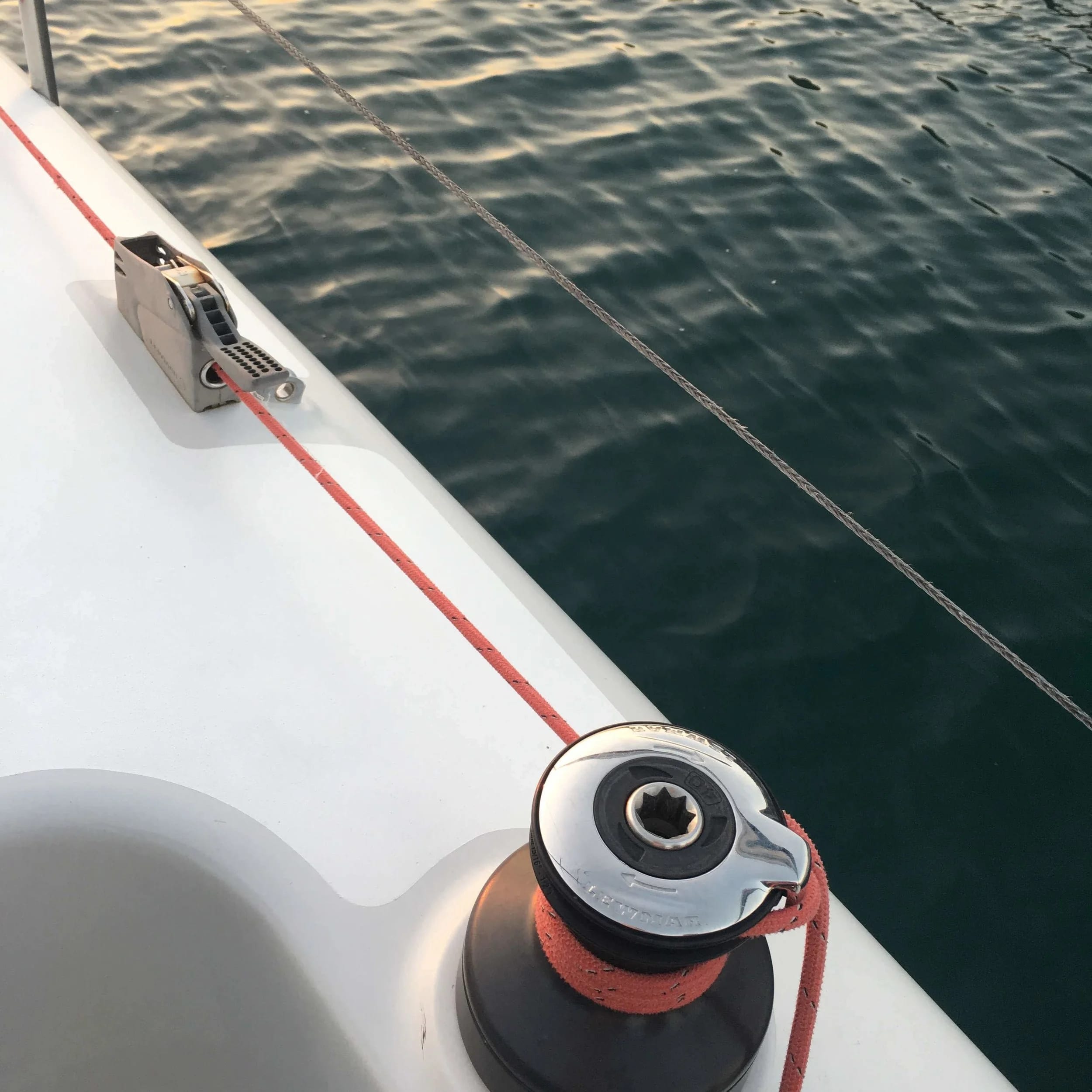 Then came the final trial: enter the marina with one engine. Gratefully, one of the main benefits to a catamaran is that you essentially always have a permanent backup engine, plus the added bonus of excellent manoeuvrability in small spaces. However, the downside is that with one engine in each hull it becomes hard not to just spin in circles when only one is running. But don’t worry - there is a solution! The dinghy (conveniently mounted on the stern) also has an engine. So we anchored in the channel just short of the marina to start rigging the workaround. We lashed the dinghy to the port engine hull at the stern to act as another engine. In theory this seemed pretty crazy, but after some practice with hand signals from the skipper we were ready to go! And as we raised the anchor, it was fouled. The chain was in a total mess. Yet another test! (Although John swears he did not plan it…) Finally solving the last piece of the puzzle, we headed into the marina. Thankfully we were able to swing into the berth (not without quite a bit of perspiring on the brow), and all-in-all it was a pretty fun adventure to get home. And this was of course a very good test of what can, and most definitely will, happen in real life.